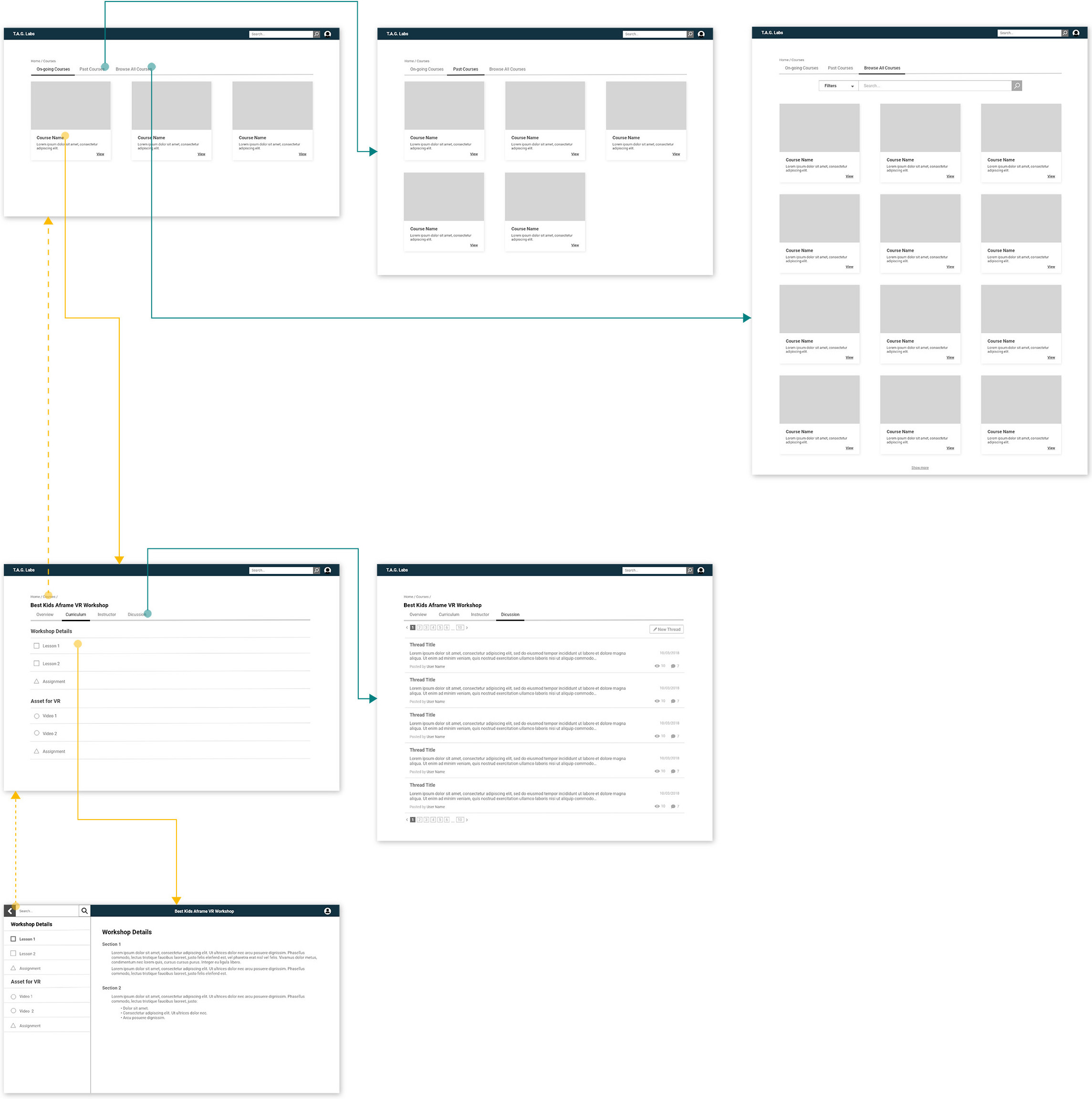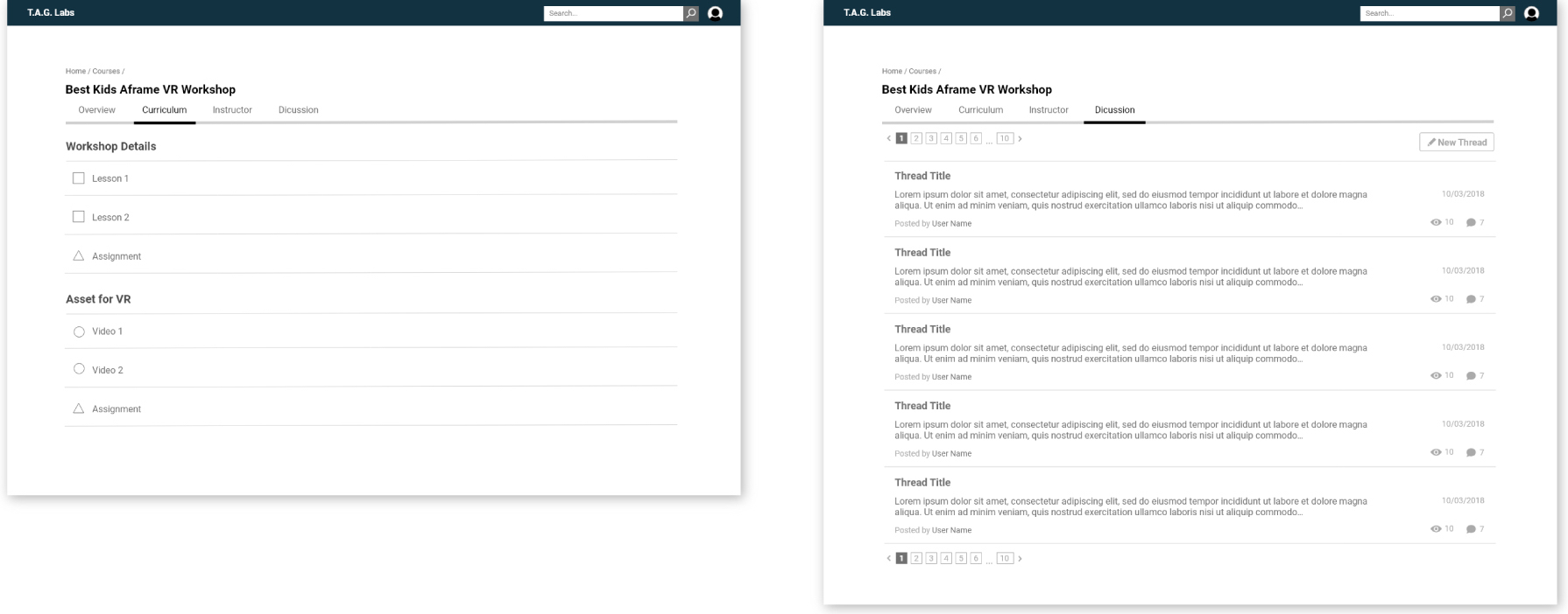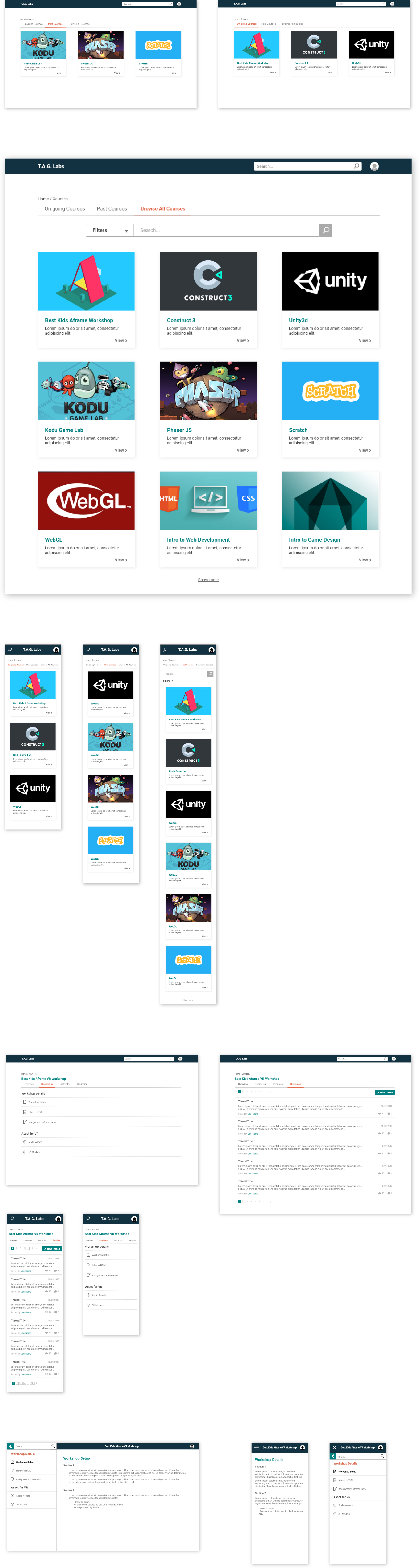 Throughout this project, I worked closely with the T.A.G. Labs Web Design/Dev team. I was mainly responsible for conducting user research and creating wireframes as well as high-fidelity mockups for the design of the LMS.